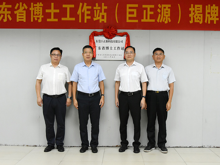8月29日上午,東莞巨正源科技有限公司舉行“廣東省博士工作站”揭牌儀式。沙田鎮(zhèn)黨委副書記陳錫立,巨正源黨委書記、董事長石新琦,黨委副書記、常務(wù)副總裁李漢初,黨委副書記、紀委書記、董事唐泉涌等領(lǐng)導為博士工作站揭牌。