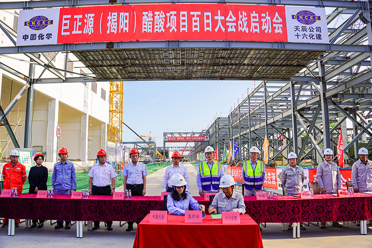 會議宣布揭陽新材料基地醋酸項目“百日大會戰”正式啟動,并對“百日大會戰”工作進行部署安排。醋酸項目是廣東省的補鏈項目,也是廣東省 “百千萬工程項目” 的重要組成部分,對揭陽新材料基地具有重要意義。會議指出,當前醋酸項目已進入沖刺階段,各方要以時不待我的責任感和使命感,倒排工期、掛圖作戰,加速推進項目建設,確保如期完成中交。