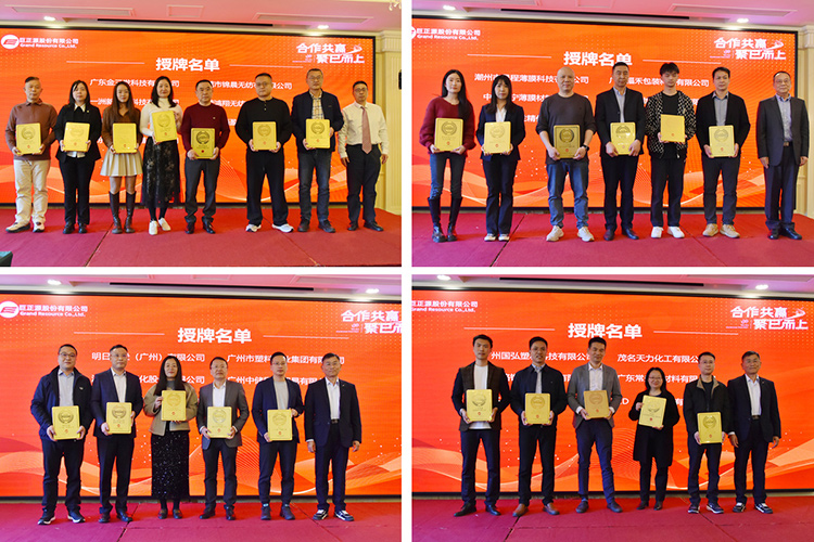 會議期間,巨正源向30家合作伙伴頒發2024年度戰略合作伙伴、優秀客戶等獎項。廣物控股集團領導、巨正源領導班子為獲獎客戶頒發牌匾。