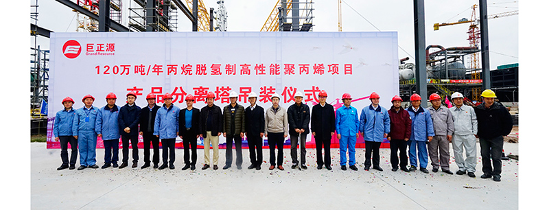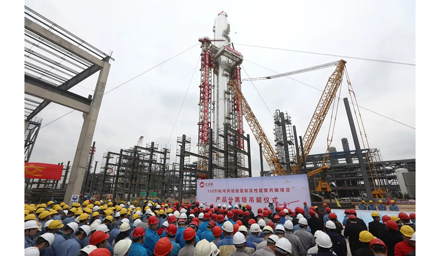 12月12日上午,巨正源公司120萬噸/年丙烷脫氫制高性能聚丙烯項(xiàng)目(以下簡稱“丙烷脫氫項(xiàng)目”)產(chǎn)品分離塔吊裝儀式在東莞市沙田鎮(zhèn)立沙島舉行。最大直徑12米、高128米,總重量約3050噸的“巨無霸”——產(chǎn)品分離塔整體一次成功吊裝就位,創(chuàng)造了國內(nèi)乃至亞洲大型設(shè)備吊裝新紀(jì)錄,同時(shí)也標(biāo)志著丙烷脫氫項(xiàng)目第一階段工程建設(shè)全面進(jìn)入沖刺階段。