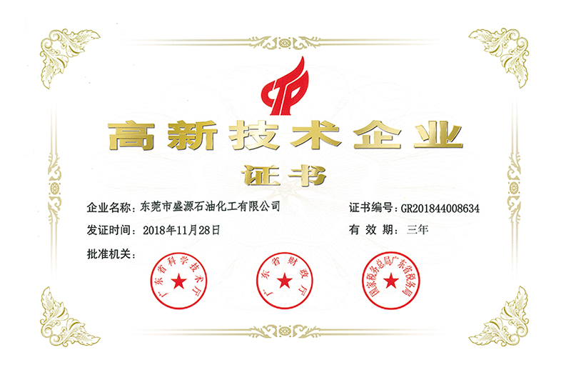 近日,巨正源所屬東莞市盛源石油化工有限公司順利通過“國家高新技術企業”認定,獲得了由廣東省科學技術廳、廣東省財政廳、國家稅務總局廣東省稅務局聯合頒發的高新技術企業證書,證書編號為GR201844008634。