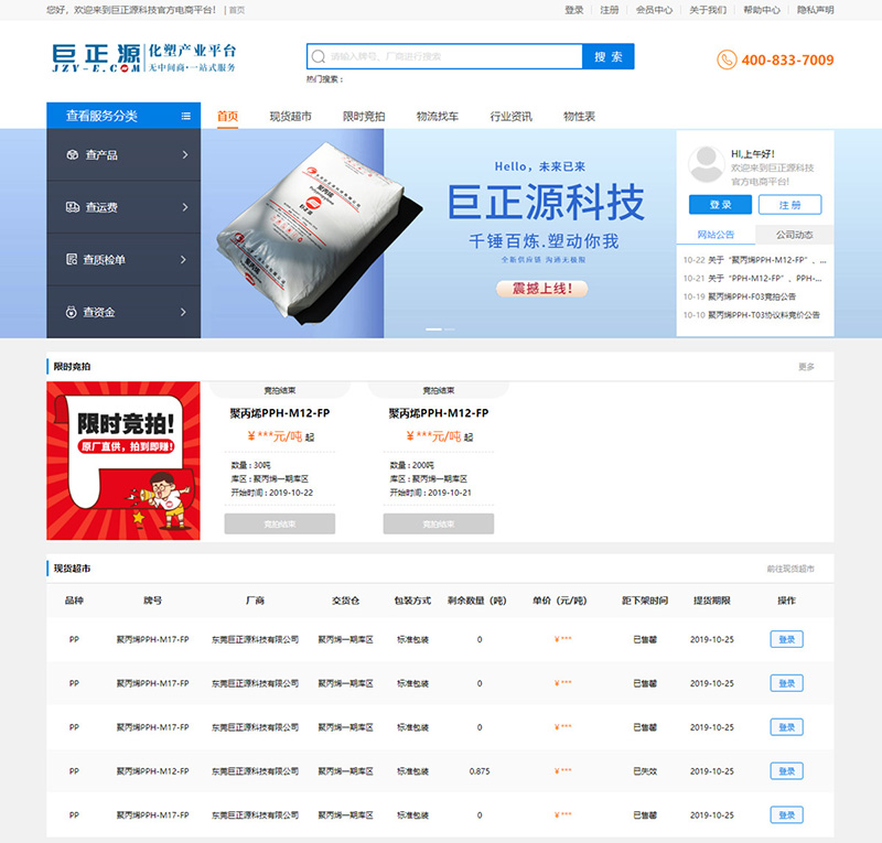 巨正源科技電商平臺(tái)正式上線 首日銷售380噸聚丙烯