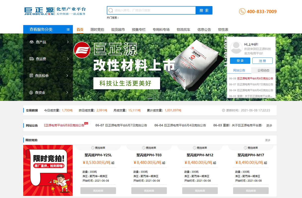 喜報!巨正源電商平臺聚丙烯線上交易量破百萬噸