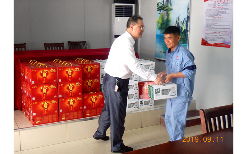 曾一平董事長親切慰問分公司員工,并為員工發放慰問品。