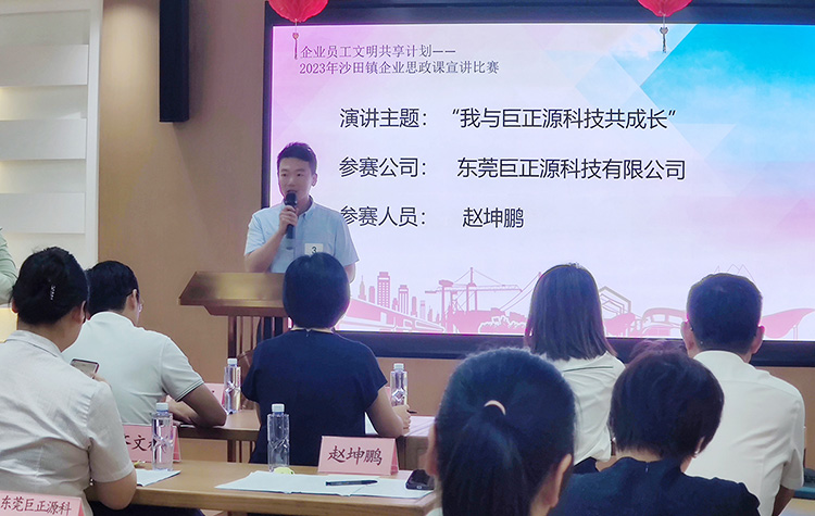 11月7日下午,“我與沙田共成長”企業思政課宣講比賽在沙田鎮新時代文明實踐中心舉行。巨正源公司趙坤鵬、齊文彬兩位選手用真摯的情感表達和真實的感人事跡講述了與企業同成長、共進步的故事,引起觀眾心靈共鳴,贏得評委高度評價,分別榮獲比賽一等獎和三等獎。
